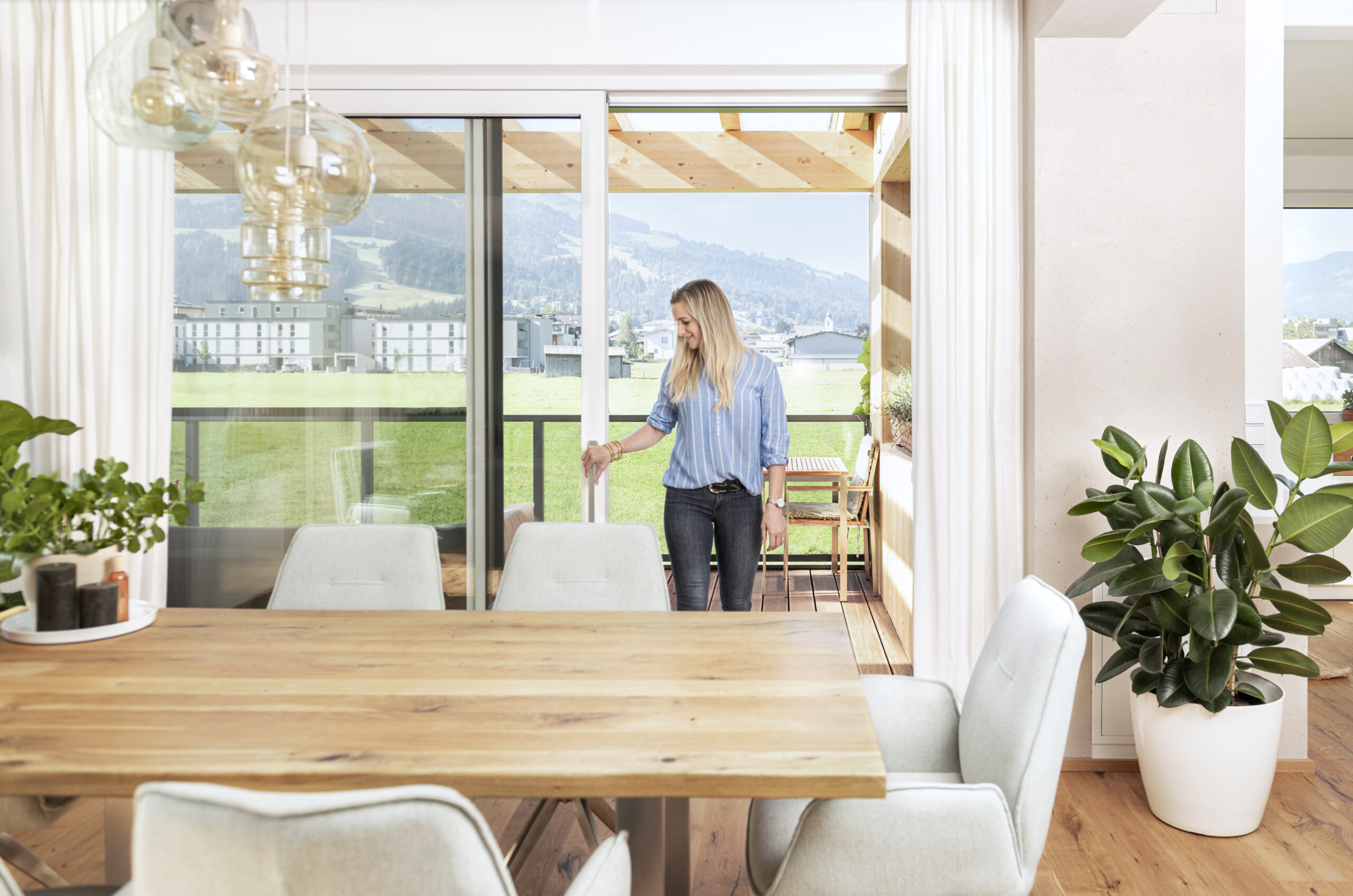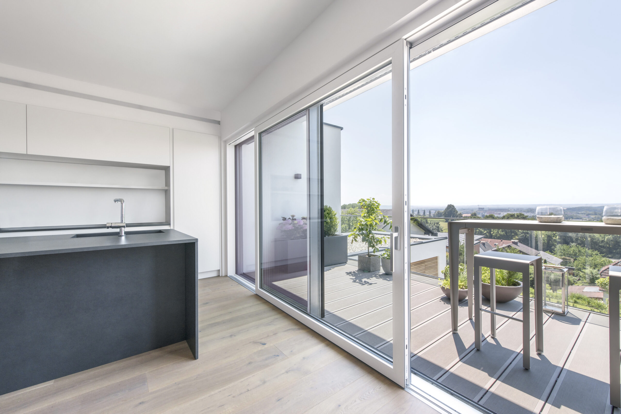 Zdvižně-posuvné dveře KS 430 vám umožní otevřít prostor, prosvětlit váš domov a šetřit energii.